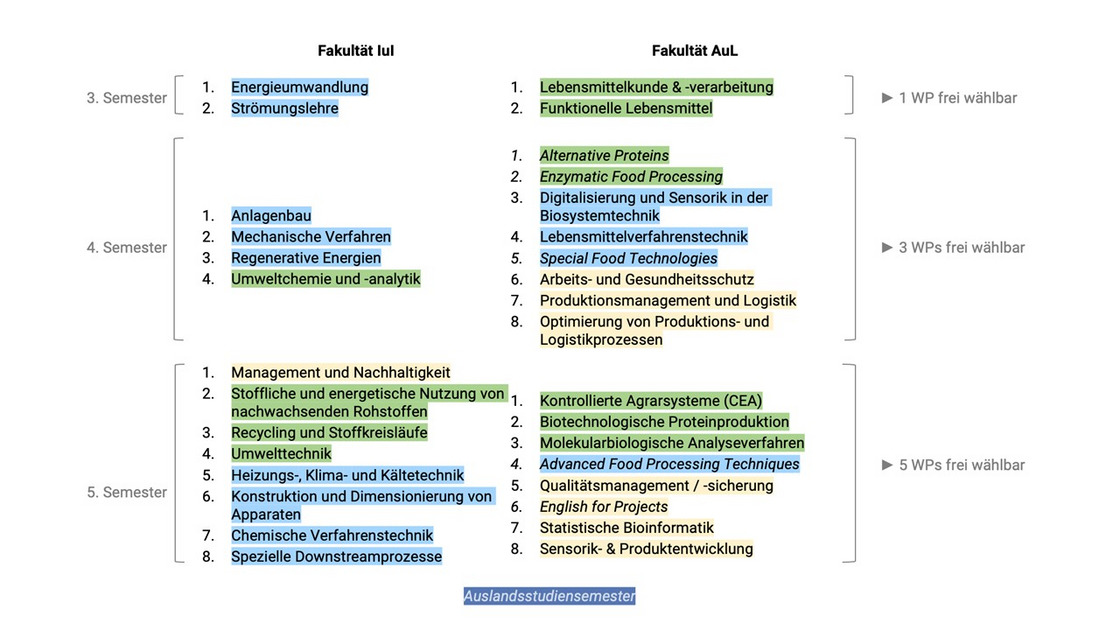 Das Studium der Bioverfahrenstechnik in der Lebensmittelindustrie besteht aus Pflichtmodulen und Wahlpflichtmodulen.