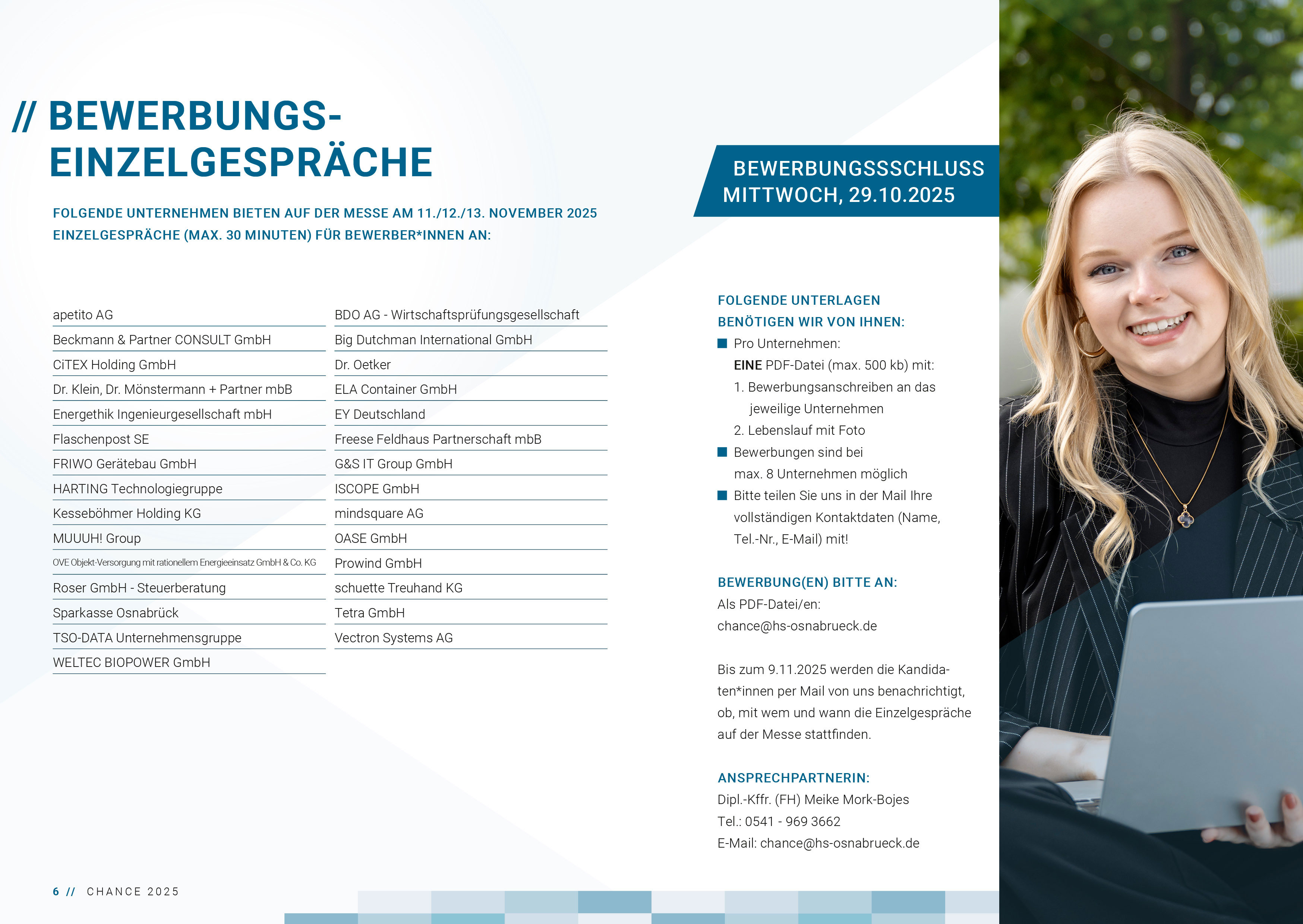 You can find an overview of all participating companies at „CHANCE 2025“ under the “participating companies” section (in German).