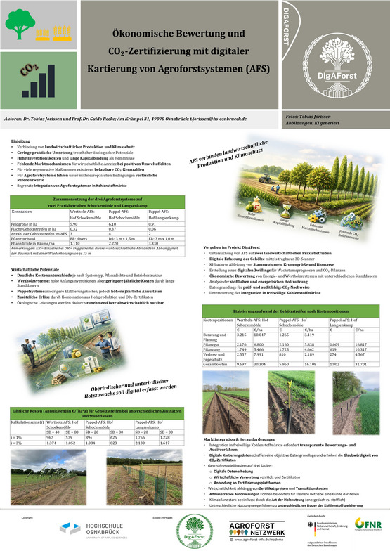 - Jorissen, T. und Recke, G. (2026): Economic Evaluation and CO₂ Certification Using Digital Mapping of Agroforestry Systems. 46th GIL Annual Conference: Data Spaces in Agriculture, Forestry, and the Food Industry – Opportunities for the Future and Current Challenges P375 PDF