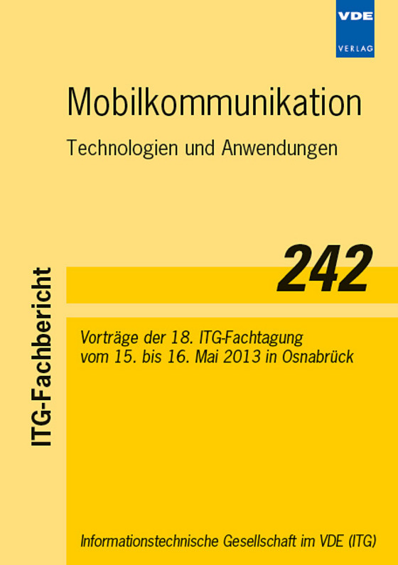 Der 120 seitige ITG-Fachbericht 242 mit allen Beträgen der 18. ITG Fachtagung Mobilkommunikation vom 15. und 16. Mai 2013 in Osnabrück können Sie direkt über den VDE-Verlag bestellen.