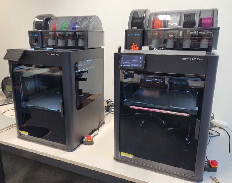 Zur Erstellung dreidimensionaler Modelle stehen in unserem Labor insgesamt zwei professionelle 3D-Drucker der Marke Bambu Lab zur Verfügung. Der Bambu Lab H2D Pro ist ein industrietauglicher 3D-Drucker, der für anspruchsvolle Anwendungen in Produktion, Forschung, Bildung und Prototyping konzipiert wurde.