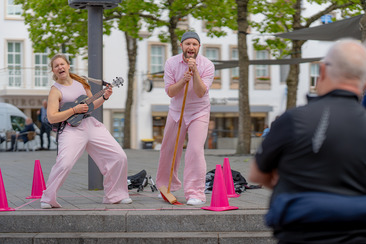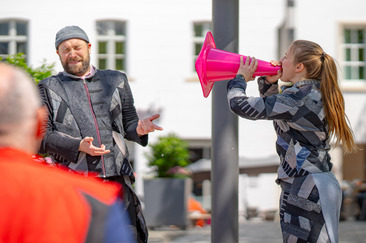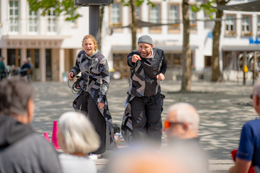 Mit dem mobilen "Straßentheater" möchten wir das Thema "Ernährungswende" direkt zu den Menschen bringen und im Stadtbild sichtbar machen. Hier steht die Partizipation der Zuschauenden im Mittelpunkt. Die Szenen sind als Unterbrechungen des Alltags gedacht, die Räume für niederschwellige Auseinandersetzung und einen Austausch mit dem Thema öffnen – da wo es am wenigsten erwartet wird.