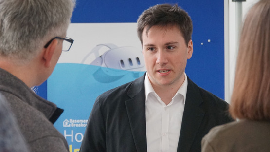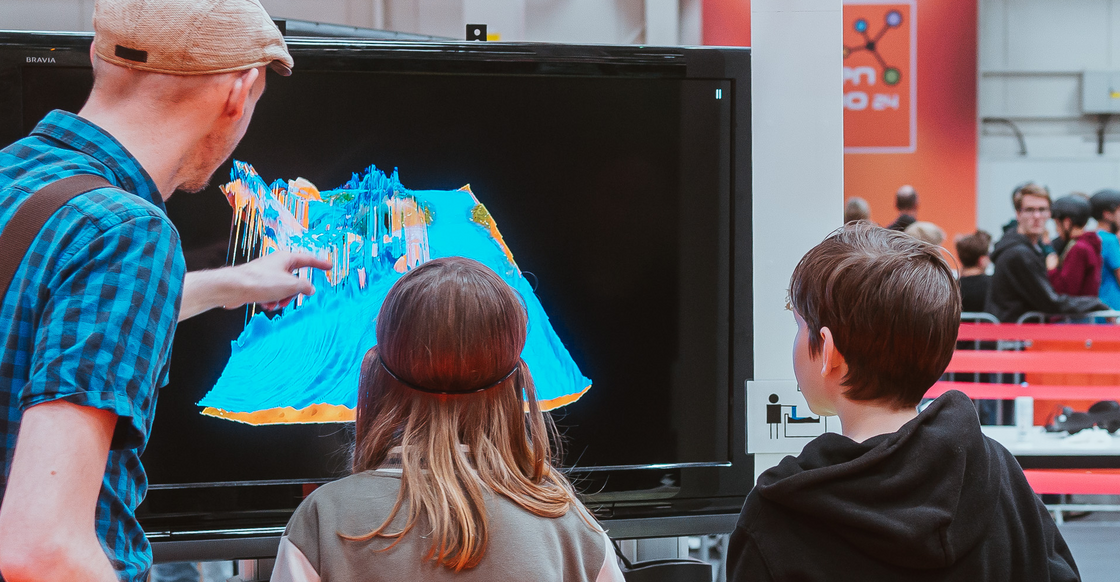 Eines dieser Exponate ist unsere Sandbox. Wie verhält sich Wasser in einer Landschaft? Was passiert, wenn sich die Landschaft verändert? Den Sand zu formen, zu beobachten und selbst Regen zu erzeugen, fasziniert und macht Spaß – egal, wie alt wir sind. Allen, die sich ganz nah dran trauen, bieten wir einen Ausflug in unser Escape-VR-Game „Basement Breakout” und viele andere Apps, um das Thema Starkregen weiter zu erforschen.