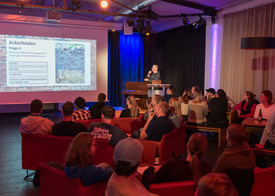 Magnus Komesker gab Einblicke in den Alltag eines Agrarroboters namens „AgRo“. In seinem humorvollen Slam schilderte er die kleinen und großen Herausforderungen im Feld – etwa die Frage, ob „Weizen“ oder „Reh“ umfahren werden soll. Dabei spielte er mit der Doppeldeutigkeit des Wortes „umfahren“: Während das Reh besser umfahren wird, sollte das Getreide umgefahren werden. Ein Slam, der für einige Lacher im Publikum sorgte.