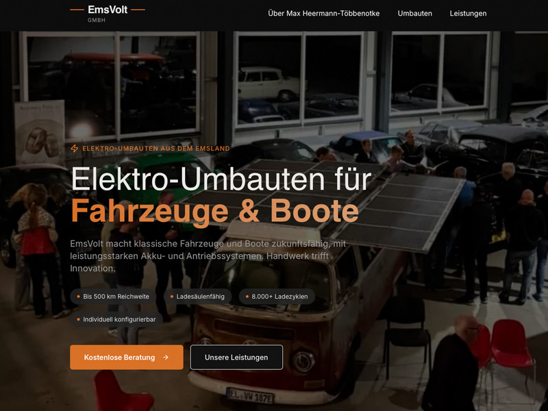 Inzwischen hat Max zudem die EmsVolt GmbH gegründet. Mit seinem Unternehmen entwickelt und vertreibt er unter anderem Umbausätze für Autos, mit denen bestehende Fahrzeuge auf elektrische Antriebe umgerüstet werden können.