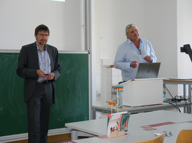 Danach ging es tiefer in die Themengebiete der einzelnen Projekte und die einzelnen Forschungsergebnisse. Ein Highlight des IIP-Projekts war ein Fahrrad, das mit einer Sensorbox am Gepäckträger ausgestattet ist, und das viele Daten über den Verkehrsfluss, den Fahrbahnuntergrund und die Luftqualität aufzeichnet. Anhand der Daten kann beispielsweise die Ampelsteuerung verbessert werden, um Staus zu reduzieren. In Münster wird die Sensebox bereits eingesetzt.