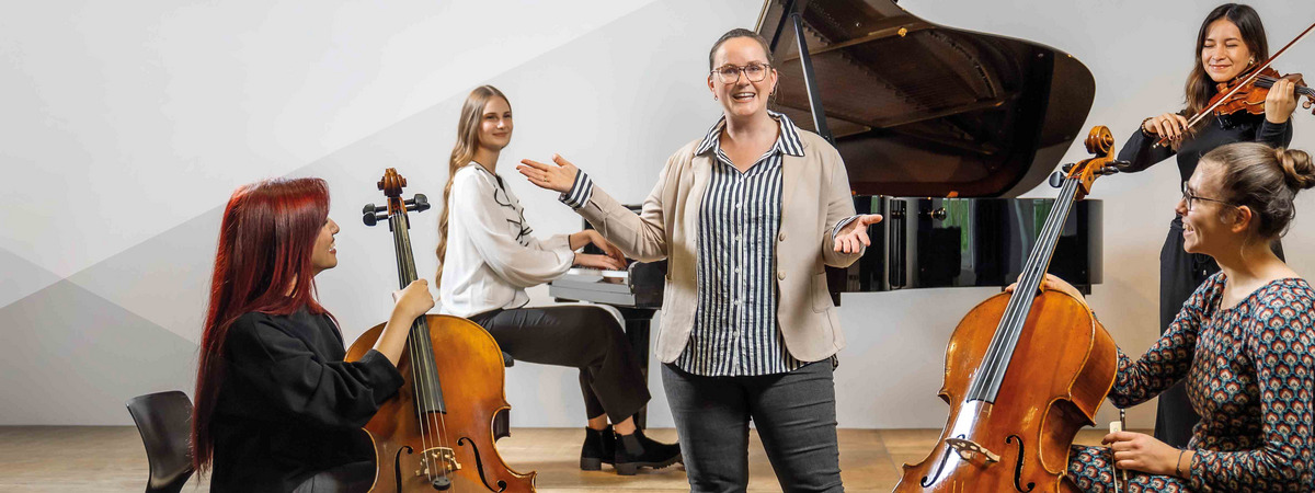 Unser Studienbereich Musik verfügt mit seiner Verzahnung von Theorie- und Praxisausbildung von Instrumental- und Vokalpädagoginnen und -pädagogen in allen stilistischen Bereichen über ein besonders bedarfsgerechtes Ausbildungskonzept. Daher wird großer Wert auf interdisziplinäre und -stilistische Offenheit gelegt.