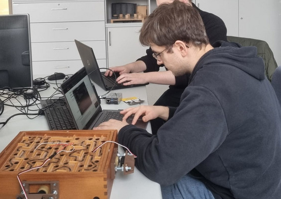 Ziel dieses Projekts ist die Entwicklung eines interaktiven Demonstrators, der die Auswirkungen von Verzögerungen in echtzeitkritischen Steuerungssystemen anschaulich darstellt. Als Demonstrationsobjekt dient ein Kugellabyrinth-Balanciertisch, bei dem eine Kugel durch gezielte Neigung der Plattform kontrolliert wird. Die Plattform kann entlang zweier Achsen bewegt werden, die jeweils von Servomotoren angesteuert werden.