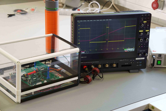 Sieben Studierende der Elektrotechnik an der Hochschule Osnabrück entwickelten einen Automatisierten Prüfstand zur Charakterisierung von Leistungshalbleitern unter realistischen Bedingungen. Der Doppelpuls-Test ist dabei ein etabliertes Verfahren, um das Schaltverhalten zu analysieren.