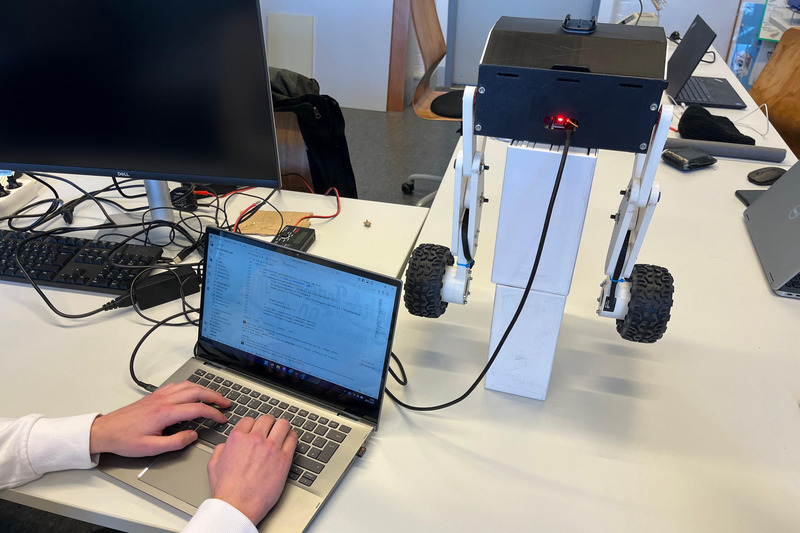 Die kräftigen Radmotoren lassen TESS Steigungen von annähernd 100 % erklimmen, wobei sie durchgehend kontrollierbar bleibt und ihr Gleichgewicht hält. Moderate Lasten wie Kameras oder weitere Sensoren können durch Anwinkeln der Beine stufenlos auf die passende Arbeitshöhe gebracht werden, um Blicke über Kanten oder unter Maschinen zu werfen. Das macht TESS zu einem Erkundungssystem für riskante und schwer zugängliche Bereiche, wodurch die Risiken für Menschen bei der Inspektion unbekannter Umgebungen minimiert werden. Schon heute erhält TESS ihre Fahrbefehle per Fernsteuerung. In einem nächsten Schritt kann diese Basis zur (teil-)autonomen Navigation ausgebaut werden.