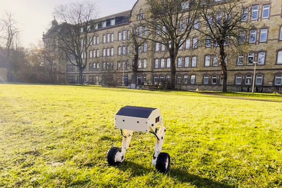 TESS zeigt, wie mobile Systeme Menschen künftig dort helfen können, wo das Gelände eng, uneben oder steil ist. Mit einer variablen Höhe von bis zu 45 cm und 3 kg Gewicht bewegt sie sich wendig und sicher durch Umgebungen, in denen andere mobile Plattformen an ihre Grenzen kommen. Die integrierte Sensorik erfasst präzise Lage- und Bewegungsdaten, sodass TESS dank der optimalen Zustandsregelung Schräglagen eigenständig ausgleicht und bei Störungen stabil bleibt.