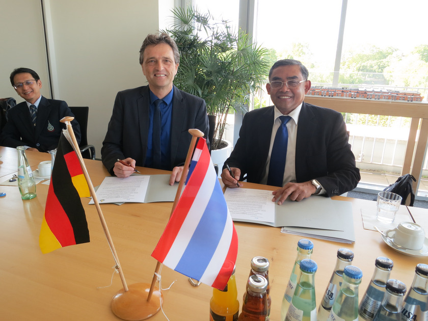 Der Aufenthalt in Osnabrück wurde genutzt, um die bestehende Zusammenarbeit zu vertiefen und weitere Anknüpfungspunkte, z.B. zu den Agrarwissenschaften und der Landschaftsarchitektur zu identifizieren. Die Gäste aus Thailand bekamen einen umfassenden Eindruck von der Zusammenarbeit der Hochschule mit Unternehmen in der Region. Gleichzeitig bot sich die Gelegenheit, den Kooperationsvertrag zu aktualisieren, der jetzt den zusätzlichen Rahmen für verschiedene Formate des Austausches und der Zusammenarbeit bietet.