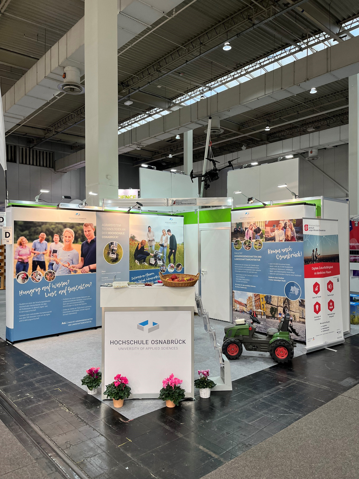 Der gemeinsame Stand in Halle 24 diente während der gesamten Messewoche vom 09.11 bis 15.11.2025 als zentrale Anlaufstelle für Gespräche rund um das Studium in Osnabrück, Digitalisierung, Smart Farming, Agrartechnik sowie aktuelle Forschungs- und Transferprojekte der Hochschule.