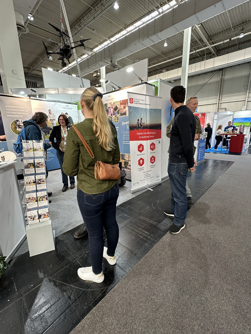 Die Standbetreuung wurde durch ein engagiertes Team aus Studierenden, Professor*innen und Mitarbeitenden der Fakultät übernommen. Diese interdisziplinäre Präsenz ermöglichte es, sowohl fachliche Fragen aus Forschung und Praxis zu beantworten als auch Studieninteressierten einen authentischen Einblick in das Studium am Campus Haste zu geben. Besonders erfreulich war das große Interesse vieler Besucher*innen, die sich gezielt über Studiengänge, Studienbedingungen und berufliche Perspektiven informierten. Auch das Mittelstand-Digital Zentrum Lingen·Münster·Osnabrück nutzte die Messe, um über aktuelle Veranstaltungen zu informieren und zahlreiche Gespräche rund um das Thema Digitalisierung zu führen.