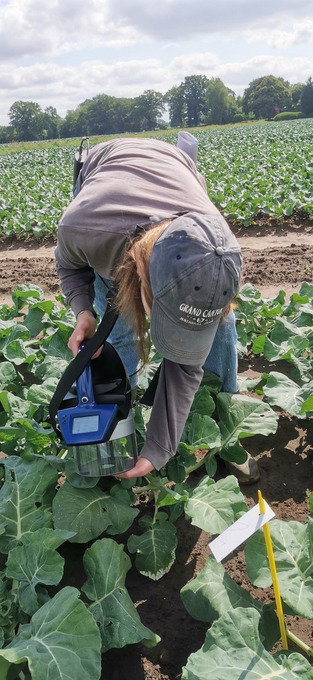 Lea Kochmann beschäftigte sich mit der Frage, wie sich der Stickstoffbedarf von Brokkoli- pflanzen genauer bestimmen lässt. Hintergrund ist, dass das pflanzenverfügbare Stickstoffangebot von Böden innerhalb eines Feldes stark variieren kann. Im Rahmen eines Feldversuchs wurde daher untersucht, ob sich der Stickstoffstatus der Pflanzen mittels optischer Sensorsysteme zuverlässig erfassen lässt. Dazu kamen zwei verschiedene Sensortypen zum Einsatz, mit denen wöchentlich während der Wachstumsphase Messungen im Bestand durchgeführt wurden. Anschließend erfolgte die Entnahme von Pflanzenproben, die im Labor auf ihren Stickstoffgehalt untersucht wurden. Die Ergebnisse zeigen deutliche Zusammenhänge zwischen den Sensordaten und der tatsächlichen Stickstoffaufnahme der Pflanzen. Besonders der auf Reflexionsmessungen basierende Sensor erwies sich als geeignet, um Unterschiede im Nährstoffstatus zu erkennen. Die Ergebnisse liefern wichtige Hinweise darauf, wie sensorgestützte Verfahren künftig auch im Gemüsebau eingesetzt werden könnten, um Düngemittel gezielter und damit ressourcenschonender einzusetzen.