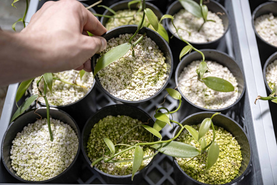 „Dafür gibt es mehrere Gründe. Der Hauptgrund ist die sehr lange Anbauzeit ohne Ertrag. Vanillepflanzen brauchen im Durchschnitt 2,5 bis 3 Jahre, bis sie die ersten Blüten bilden – manche Pflanzen lassen sich noch mehr Zeit. Dann blühen sie nur einmal jährlich. Wenn sich nach Jahren die ersten Blüten am frühen Morgen öffnen, heißt es schnell sein. Denn jede Blüte blüht nur einen Tag lang – das optimale Zeitfenster zur Bestäubung ist nur ca. drei Stunden lang. Außerdem muss händisch mit einer Art Zahnstocher bestäubt werden. Nach neun weiteren Monaten ist die Schote erntereif – aber noch nicht zum Verzehr geeignet. Dann muss sie noch fermentiert, also in heißes Wasser getunkt, und besonders gelagert werden. Erst dann können wir sie endlich zum Backen nutzen. Die Produktion vom Steckling zur verzehrfertigen Schote dauert also 3,5 bis 6 Jahre.“