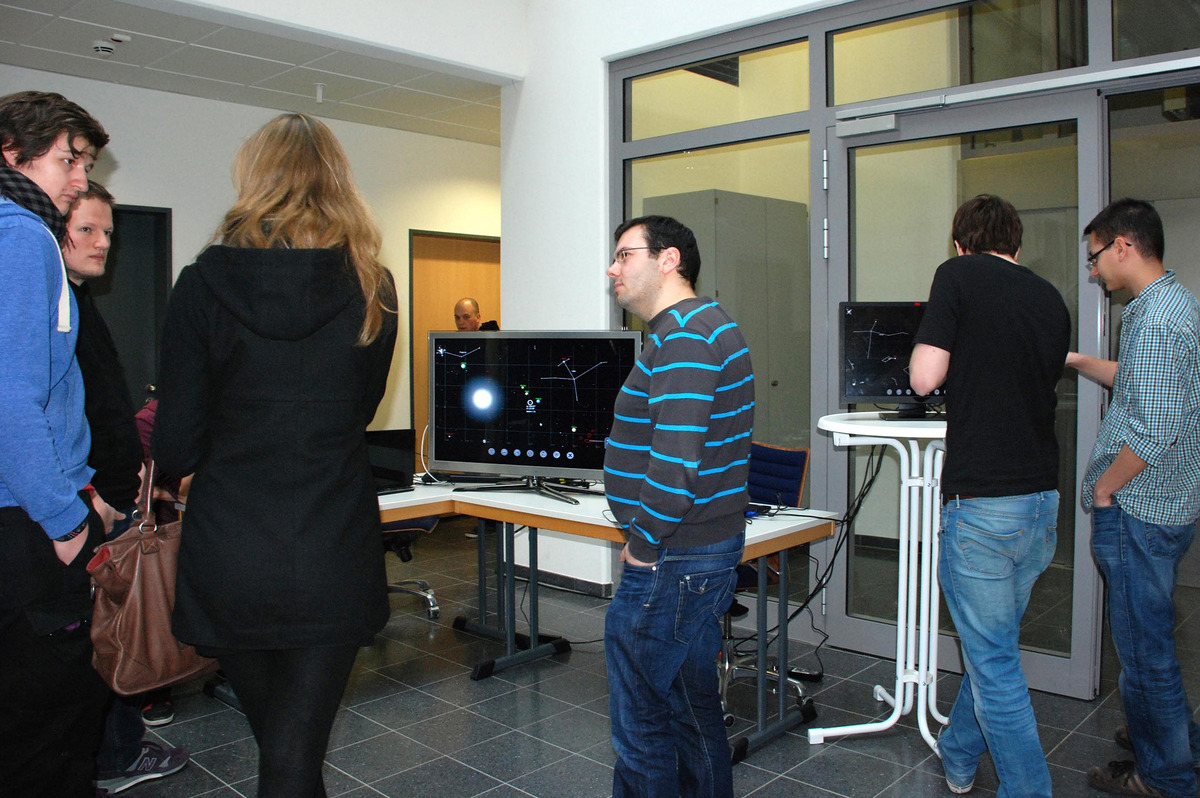 Auch der Betreuer, Diplom-Informatiker Björn Plutka, ist mit den Ergebnissen seiner Projektgruppe zufrieden. Als Mitglied des Naturwissenschaftlichen Vereins Osnabrück war ihm bewusst, dass sein Projekt vor allem hohe Anforderungen an die Mathematikkenntnisse der Studierenden stellt: In der Astronomie finden fünf unterschiedliche Koordinaten-Systeme Anwendung, und drei davon mussten die Teammitglieder aufeinander abstimmen, um den aktuellen Sternenhimmel am eingestellten Standort simulieren zu können. „Die Studenten haben ihre Aufgabe super hingekriegt! Sowohl die Umrechnung von Umlaufbahnen der Himmelskörper als auch die grafische Darstellung der Sterne, Planeten und anderer astronomischer Objekte sind ihnen sehr gut gelungen“, so der Dozent der Fakultät Ingenieurwissenschaften und Informatik.