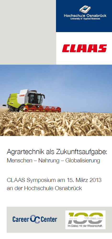 Symposium des Agrartechnik-Unternehmens CLAAS am 15. März in der Hochschule Osnabrück Mittwoch, 13. Februar 2013