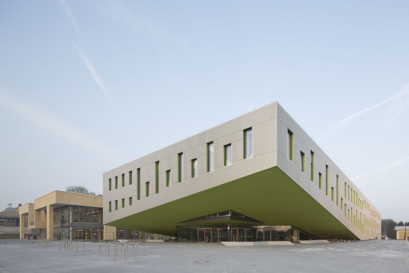 Markus Sporer, Geschäftsführer der Benthem Crouwel GmbH, welche Architektur und Baukonzept des Gebäudes erstellte und umsetzte, griff den Faden auf und erklärte zur strategischen Planung des Großprojekts: „Eine der Herausforderungen bei diesem Projekt war die klare und knappe Budgetvorgabe. Also haben wir eine ‚Strategie‘ entwickelt, wie dieses Ziel erreicht werden kann und gemeinsam mit der Bauherrin abgestimmt oder einfacher gesagt - wir haben die richtigen Schwerpunkte gesetzt: eine effiziente und kompakte Grundstruktur mit zentralen Technikflächen, die kurze Leistungswege ermöglichen, der Verzicht auf eine Unterkellerung sowie eine einfache Konstruktion des Massivbaus mit hohem Fertigteileinsatz. Dazu haben wir einfache aber wertige Materialien verwendet mit teilweise sichtbarer Installationsführung. Dies gab uns Spielräume, die aufwändigere Konstruktion der Lernlandschaft und die wertige Fassade umzusetzen. Auf das Ergebnis sind wir stolz!"