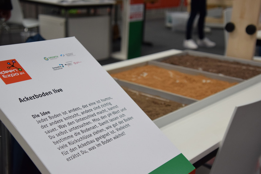 Im Bereich Ernährungswelten (Halle 6) können Besucher*innen erleben, wie vielfältig Böden sein können und selbst den pH-Wert und die Bodenart bestimmen. Der Agrarroboter „Oz“ zeigt, wie moderne Robotik die Landwirtschaft revolutioniert, während eine interaktive Starkregen-Simulation die Auswirkungen extremer Wetterereignisse verdeutlicht. Und mit der "Augmented Reality Biosphere" können Messegäste durch ein Spiel die Klimaveränderungen von morgen erforschen.