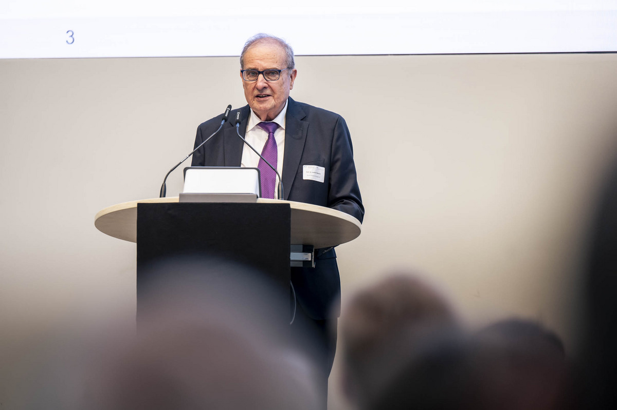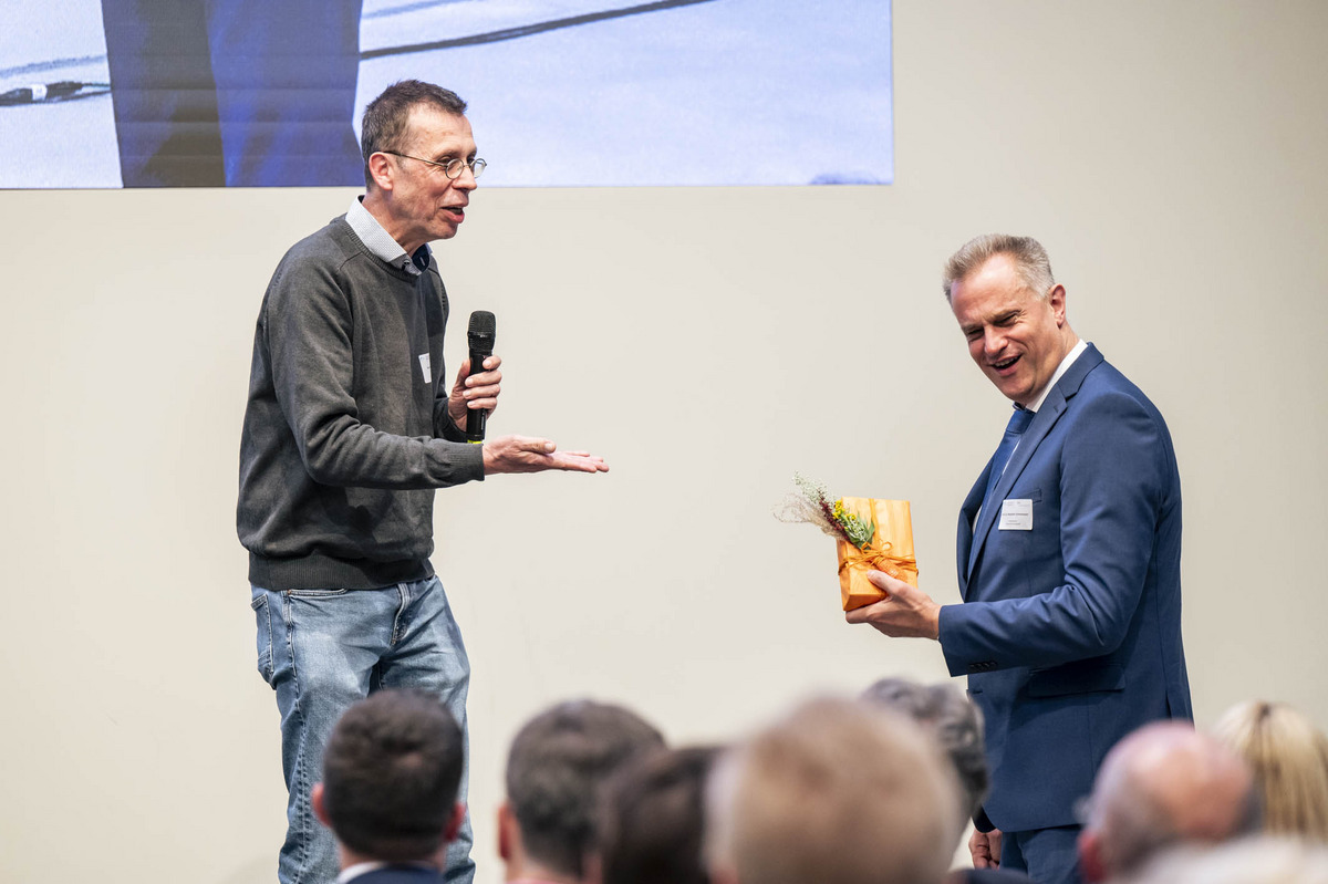 Amtsvorgänger Prof. Dr. Andreas Bertram skizzierte den 2010 begonnenen Diskussionsprozess und die Einführung seines Ansatzes „Ermöglichen - statt erlauben“ und dankte zahlreichen Mitstreiter*innen der vergangenen 14 Jahre. Er wünschte seinem Nachfolger alles erdenklich Gute auf dem Weg, die Hochschule Osnabrück weiter zu entwickeln und verabschiedete sich von seiner Hochschule.