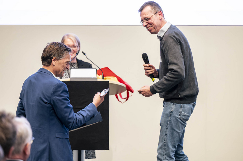 Amtsvorgänger Prof. Dr. Andreas Bertram skizzierte den 2010 begonnenen Diskussionsprozess und die Einführung seines Ansatzes „Ermöglichen - statt erlauben“ und dankte zahlreichen Mitstreiter*innen der vergangenen 14 Jahre. Er wünschte seinem Nachfolger alles erdenklich Gute auf dem Weg, die Hochschule Osnabrück weiter zu entwickeln und verabschiedete sich von seiner Hochschule.