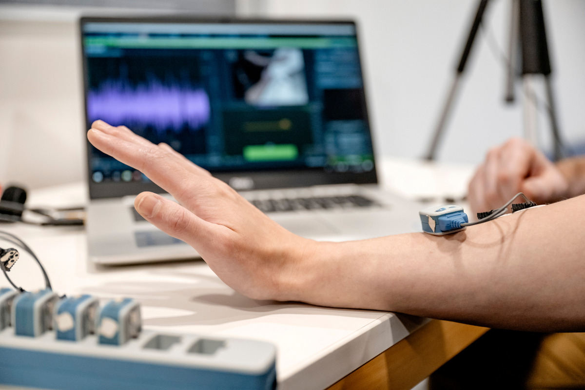 Grundlage für Eduard Wolfs Arbeit sind biomechanische Daten, die messbaren Informationen über die Bewegungen und Kräfte des menschlichen Körpers: Zum Beispiel, wie stark ein Gelenk gebeugt oder gestreckt wird, oder, welche Muskeln aktiviert werden und wie stark sie arbeiten. Diese Daten werden über Bewegungsanalysen in einem speziell eingerichteten Bewegungslabor erhoben. Mithilfe von Motion-Capture-Technologie und Elektromyographie werden Informationen zu Gelenkwinkel, Muskelaktivität und Bewegungsmuster präzise erfasst. Dabei werden die Daten von Musiker*innen mit und ohne körperliche Beschwerden miteinander verglichen.
