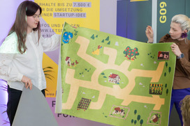 Jana Sabelhaus stellte einen interaktiven Spielteppich vor, der mit Sound und Storytelling auf das jeweilige Alter der Kinder angepasst werden kann. Beim Demo Day präsentierte sie einen ersten Prototypen.