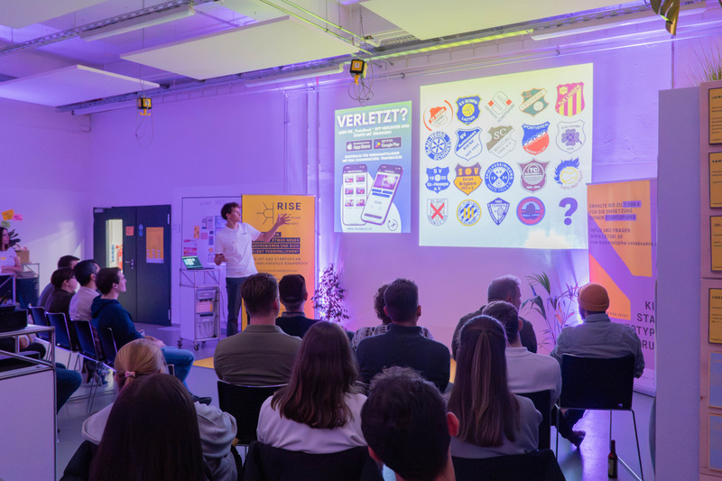 Henry Sievers (Founder von TrainBack) nahm uns mit in die Welt des digitalen Reha-Trainings: Seine App unterstützt Sportler*innen dabei, ihre Genesung aktiv mitzugestalten. Er berichtete, wie ihm die Nutzung des Social Media Studios und Netzwerkevents des RISE dabei halfen, seine Idee zu verwirklichen. Zudem teilte er seine Erfahrungen mit den Fördermöglichkeiten für junge Gründer*innen. Er erhält aktuell das NBank Gründungsstipendium und ist Teil des Batches im OHA Healthcare Accelerator. Auch das DigiLab der Universität Osnabrück stellte sich vor und teilte Informationen zu den diversen Möglichkeiten und Ressourcen in der Werkstatt am Schloss.