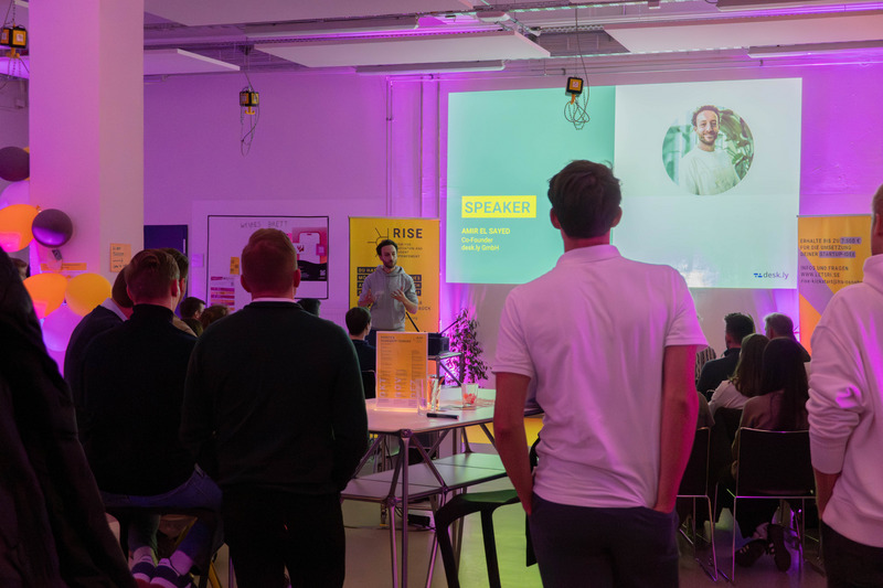 Amir El Sayed, Co-Founder der desk.ly GmbH, zeigte seine Perspektive. Das Startup bietet eine smarte Workplace-Management-Plattform, die hybrides Arbeiten einfacher und effizienter macht. Amir betonte, wie wichtig es ist, sich frühzeitig mit erfahrenen Personen auszutauschen. Besonders hob er die Bedeutung der ausdifferenzierten Personalauswahl in den unterschiedlichen Phasen der Gründung hervor.