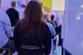Zehra Rojin Cimen, Bachelorstudentin der Media & Interaction Design, stellte sich als UX/UI-Designerin vor. Sie demonstrierte eindrucksvoll die Bedeutung von gutem Design und interaktiven Produkten in Form von Software und Prototyping. Zudem berichtete sie von ihrer Vorgehensweise als angehende selbstständige Designerin.