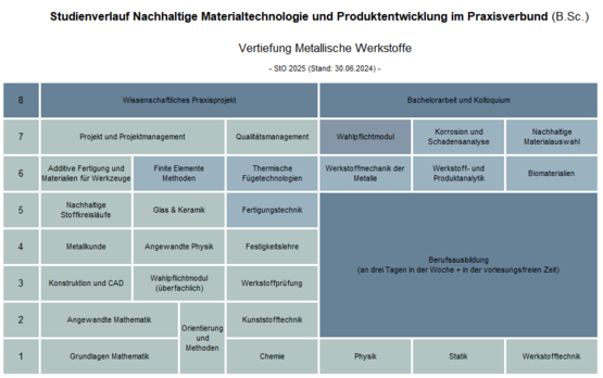 Die Regelstudienzeit des ausbildungs- bzw. berufsbegleitenden Bachelorstudiengangs beträgt acht Semester. Das erste Semester verbringst du ausschließlich an der Hochschule. Das weitere Studium findet parallel zur gewerblichen Ausbildung bzw. deiner einschlägigen Berufstätigkeit in einem Unternehmen statt.