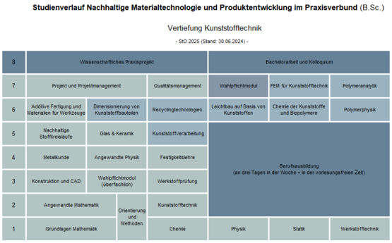 Während der Teilzeitsemester 2 bis 5 bist du an drei Tagen in der Woche im Unternehmen, an zwei Tagen studierst du an der Hochschule. Nach dem 5. Semester endet die gewerbliche Ausbildung mit der Facharbeiterprüfung vor der Industrie- und Handelskammer.