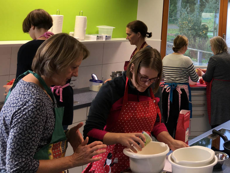 Studierende der Ökotrophologie führten im Rahmen des Projekts Ökotrophologie am 15. Oktober eine Lehreinheit zur Apfelsaftherstellung im WABE-Zentrum für Auszubildende zu hauswirtschaftlichen Helfern des Hauses am Schlehenbusch durch. Neben Theorie gab es für die Azubis jede Menge Praxis. Sie nutzten verschiedene Verfahren um ihren eigenen Apfelsaft herzustellen. Außerdem konnten sie durch das Probieren von handelsüblichen Apfelsäften und hausgemachten Apfelkuchen ihre sensorischen Fähigkeiten verbessern.