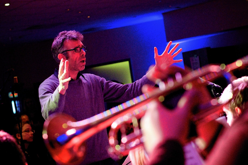 Und dies gleich von Anfang: das Jazzorchester des IfM unter der gleichermaßen exzellenten und humorvollen Leitung von „Bandleader“ Stephan Schulze eröffnete mit einem Jazzkonzert. Werke aus den Bandbooks großer amerikanischer Ensembles wie Count Basie, Thad Jones oder Stan Kenton begeisterten die Zuschauer. Die Bühne war damit musikalisch und atmosphärisch vorbereitet für die nächsten drei intensiven und kreativen Tage.
